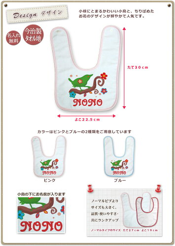 出産祝い 名入れ スタイ 赤ちゃんに優しい今治タオル生地 日本製 名前入り よだれかけ ビブ 名入れ無料 可愛い小鳥の動物 デザイン タイニーバード 女の子 ベビー 新生児 通常6-7営業日お届け 百日祝い 【メール便対応】 【ココロコ】