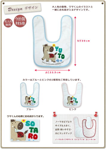 出産祝い 名入れ 名前入り プレゼント 男の子 女の子 ビブ スタイ >>> メール便についての詳しい説明はこちら <<<人気の動物シリーズ「ウマくん」のスタイです。