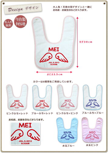 出産祝い 名入れ スタイ 赤ちゃんに優しい今治タオル生地 日本製 名前入り よだれかけ ビブ 名入れ無料 かわいい 天使の羽 デザイン 天使の羽A 女の子 ベビー 新生児 通常6-7営業日お届け 百日祝い 【メール便対応】 【ココロコ】