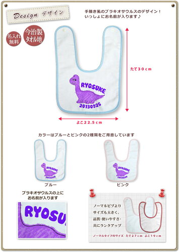 出産祝い 名入れ スタイ 赤ちゃんに優しい今治タオル生地 日本製 名前入り よだれかけ ビブ 名入れ無料 動物 デザイン 恐竜 ブラキオサウルス 男の子 ベビー 新生児 通常6-7営業日お届け 百日祝い 【メール便対応】 【ココロコ】
