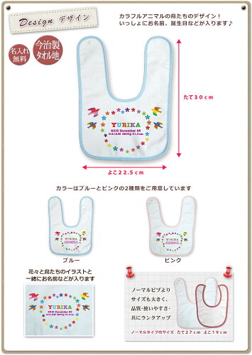 出産祝い 名入れ スタイ 赤ちゃんに優しい今治タオル生地 日本製 名前入り よだれかけ ビブ 名入れ無料 カラフルアニマル バードB 男の子 ベビー 新生児 通常6-7営業日お届け 百日祝い 【メール便対応】 【ココロコ】